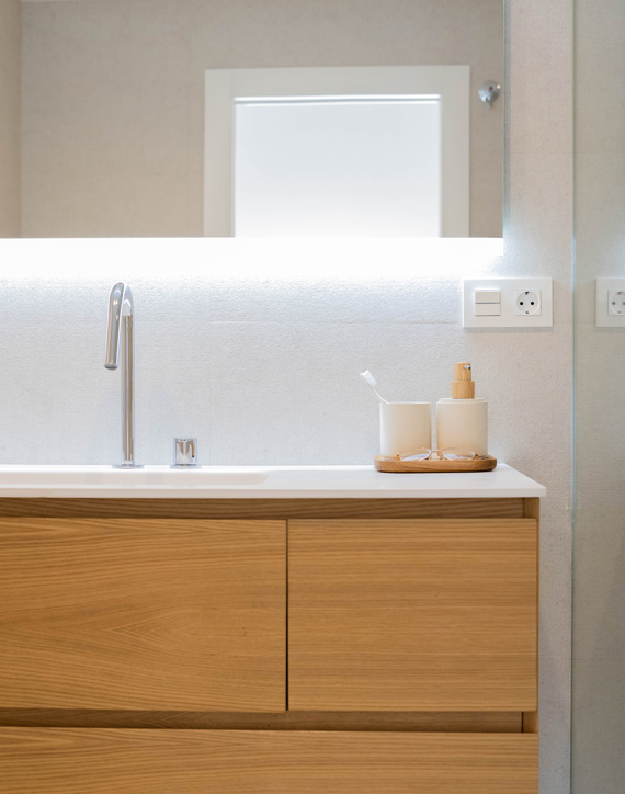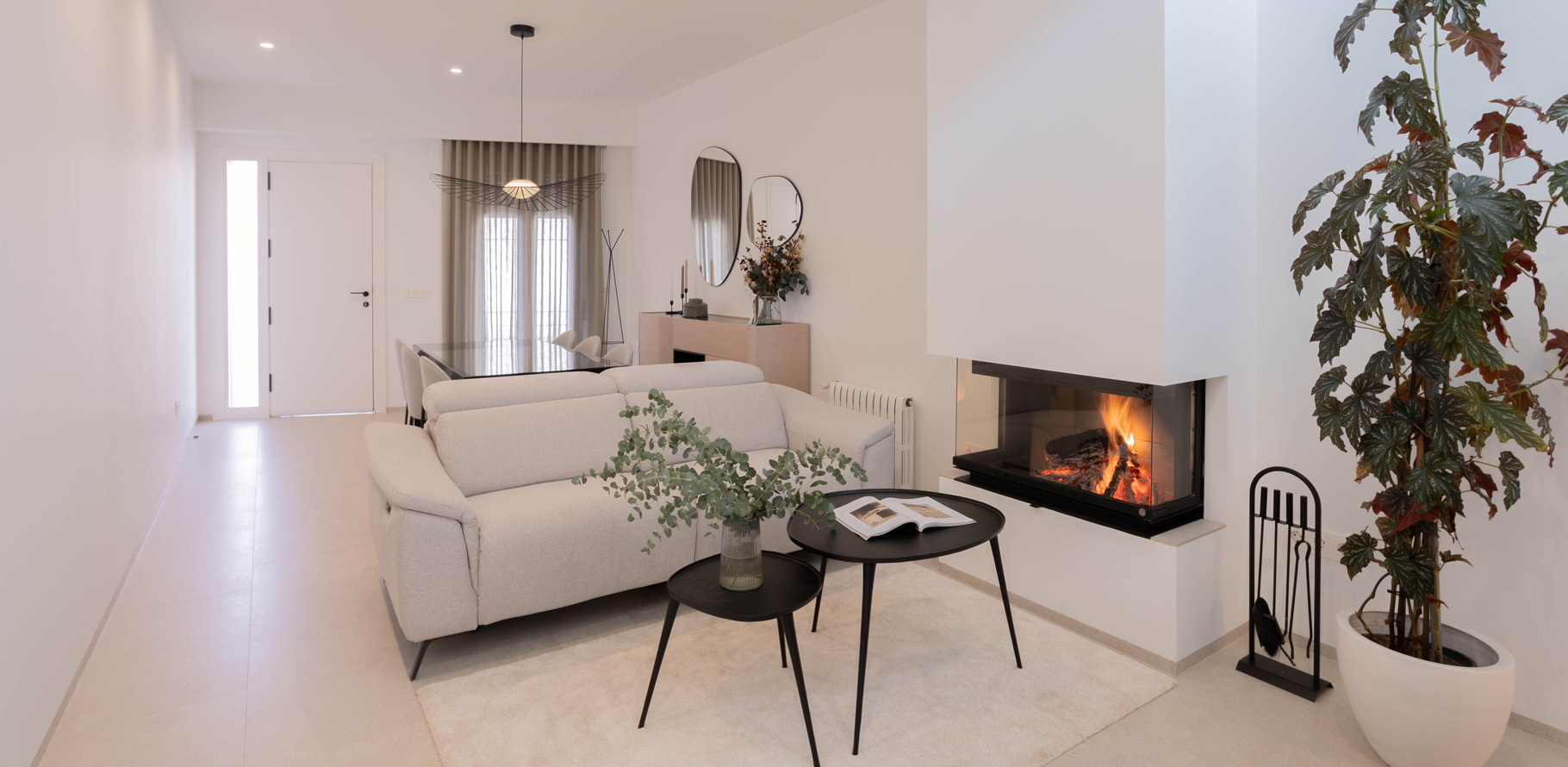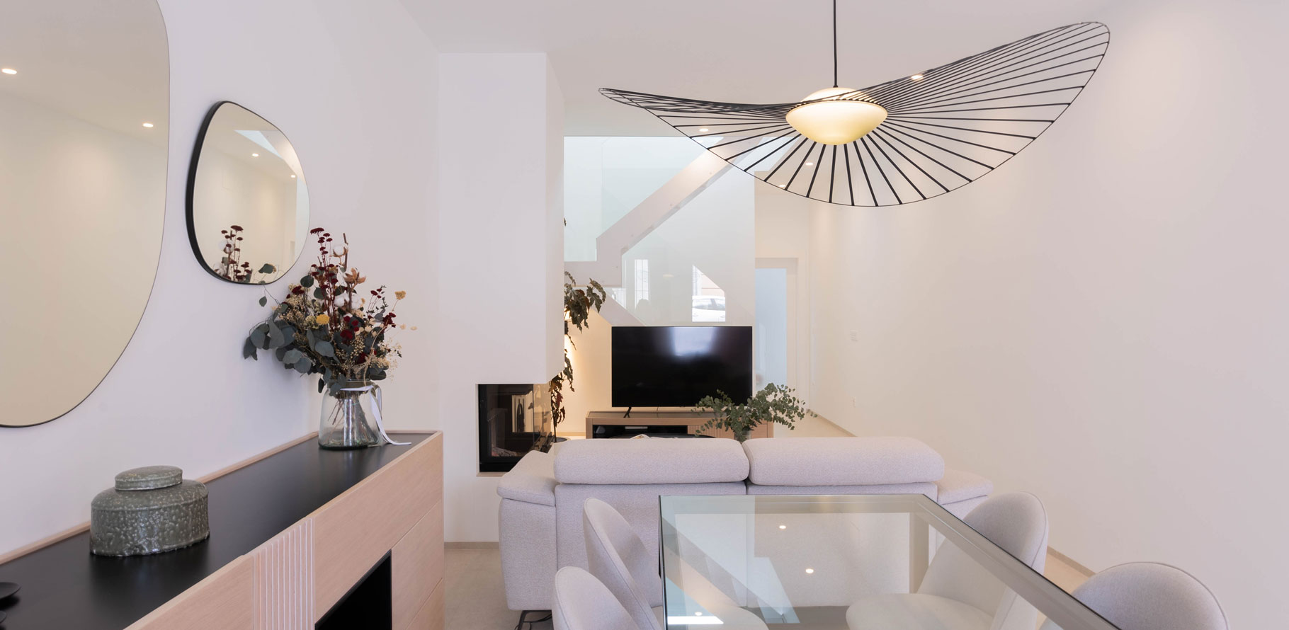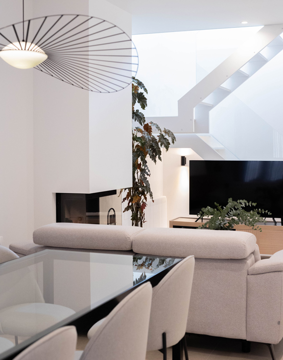 En este proyecto de reforma integral de una casa entre medianeras, el objetivo principal ha sido aprovechar al máximo el espacio disponible y potenciar la entrada de luz natural para crear ambientes luminosos y abiertos. Se ha apostado por un diseño atemporal que combina una paleta de colores neutros con materiales y acabados que transmiten elegancia y calidez.