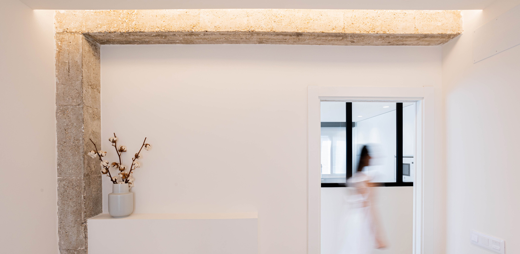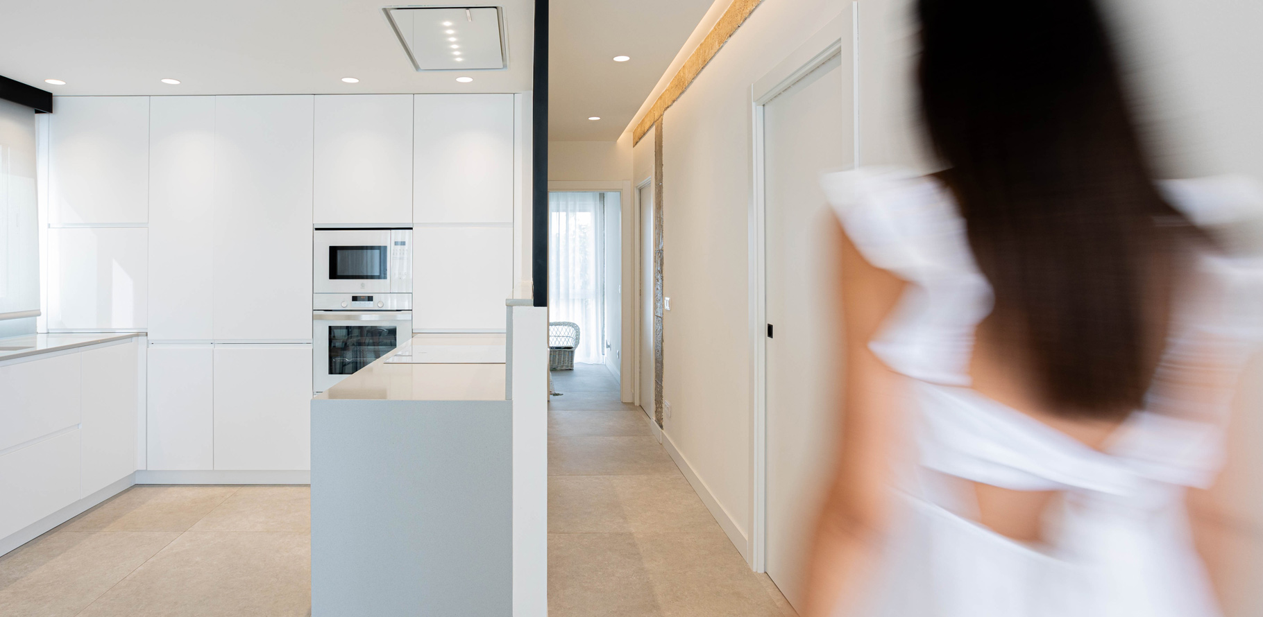 La familia apostó por un diseño minimalista cálido con toques industriales que aportan carácter al hogar. Uno de los elementos más distintivos del proyecto son las vigas de hormigón vistas, que se han mantenido expuestas como protagonistas del espacio. La iluminación indirecta se ha utilizado estratégicamente para realzar estos elementos estructurales, creando un ambiente acogedor y sofisticado que combina modernidad y calidez.