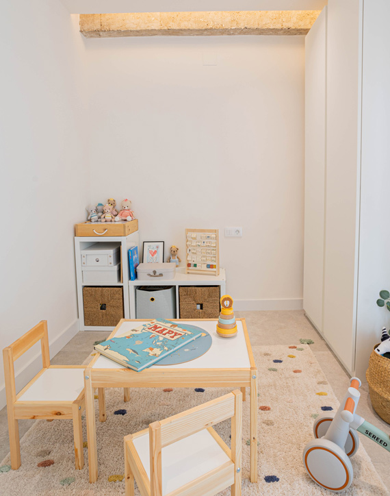 Este proyecto de reforma integral ha transformado por completo la distribución de la vivienda para adaptarse a las necesidades de una familia, maximizando cada centímetro disponible. El nuevo diseño incluye dos dormitorios individuales, un dormitorio principal en suite, un baño compartido para niños e invitados, y una cocina y comedor abiertos que se conectan de manera fluida, creando un espacio amplio y funcional para disfrutar en familia.